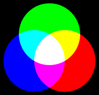 Jedná se o princip, kdy se při společném maximálním osvitu plochy všemi třemi barvami dosáhne bílé barvy.