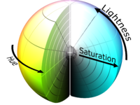 Model HSL (Hue - barevný tón, Saturation - sytost barev, Lightness - světlost) je velmi podobný HSV. Zavedla jej firma Tektronix a podařilo se jí odstranit některé nedostatky HSV. Sytost leží na vodorovné ose, světlost na svislé ose a barevný tón představuje úhlová hodnota. Tvar modelu odpovídá skutečnosti - schopnost rozlišování barevných odstínů skutečně klesá se ztmavováním a zesvětlováním základní čisté barvy, zvyšování a snižování světlosti barvy skutečně spočívá v přidávání světlého nebo tmavého pigmentu.