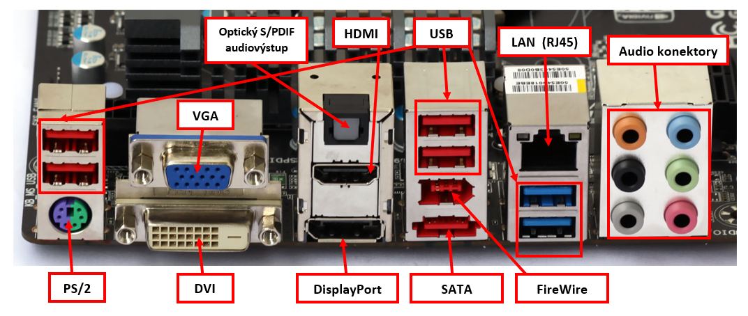 - PS/2 - připojení myši a klávesnice (starší, dnes se používá převážně USB)